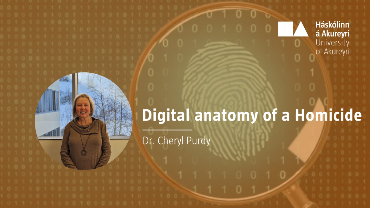 On Wednesday February 28 at 12:15, Dr. Cheryl Purdy from Cumberland University and West Kentucky University will give a lecture on the capabilities and limitations of digital forensics through the lens of an actual murder case. Dr. Purdy is an experienced digital researcher and is currently staying at the University of Akureyri as a Fulbright Specialist in Cyber-Security & Critical Infrastructure.