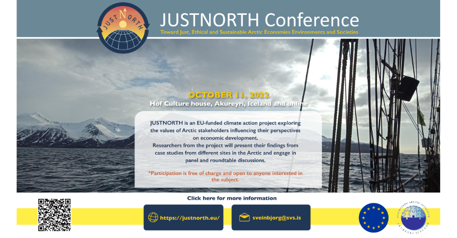 This is an invitation to the open Science Day of the 2nd annual JUSTNORTH Conference that is taking place in Akureyri, the capital of Northern Iceland, on October 10-12, 2022.