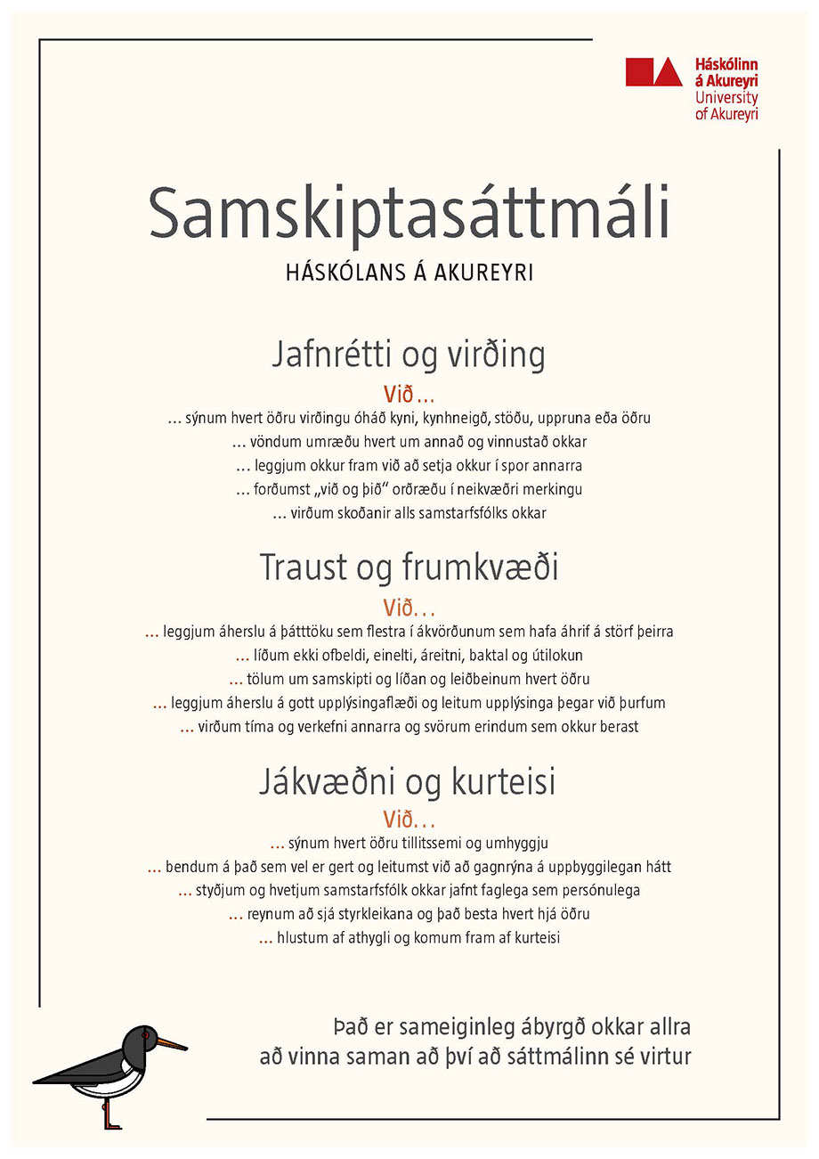- Við sýnum hvert öðru virðingu óháð kyni, kynhneigð, stöðu, uppruna eða öðru