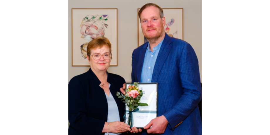 María Finster Úlfarsson gat ekki verið viðstödd en Sveinn Úlfarsson tók við styrknum fyrir hennar hönd sem Silja Bára R. Ómarsdóttirr, rektor Háskóla Íslands afhenti.