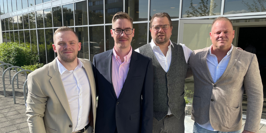 Gísli Kort ásamt nýbrautskráðum hjúkrunarfræðingum á Háskólahátíð 2023 fv. Sindri Snær Freysson, Jórmundur, Gísli Kort og Davíð Héðinsson
