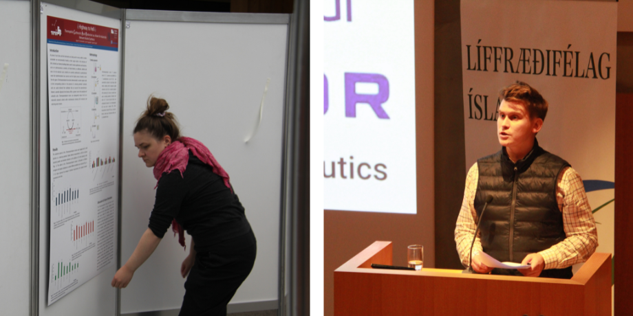Eva María hengir upp plakat fyrir eigin rannsókn og Jóhann Páll Jóhannsson, umhverfis-, orku- og loftlagsráðherra mætti til að ávarpa ráðstefnuna