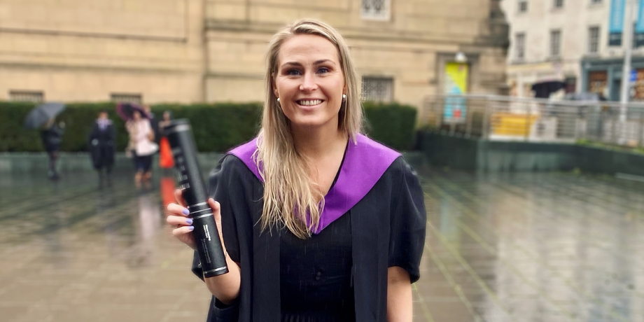„Mér fannst námið vera mun meira krefjandi en ég bjóst við í upphafi. Ég vildi klára námið á sem stystum tíma svo ég vissi að þetta yrði mikil vinna en það sem kom mér á óvart var hversu mikinn áhuga ég fékk á viðfangsefnunum og óskaði þess bara að hafa minnkað vinnuna enn frekar til að geta lesið mér meira til, sérstaklega í ljósi þess að námið var í heild sinni mun fræðilegra en ég bjóst við,“ segir Freyja, sem kláraði námið á einu og hálfu ári.