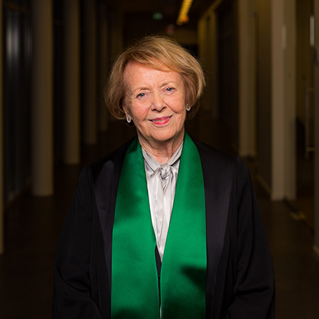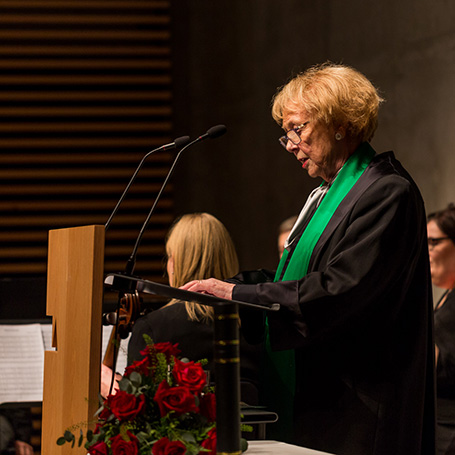 Árið 2019 hlaut frú Vigdís heiðursdoktorsnafnbót við Háskólann á Akureyri á sviði heilbrigðisvísinda og erum við afar stolt af því að hún sé hluti af þeim virðulega hópi. Heiðursnafnbótina hlaut hún fyrir víðtæk jákvæð samfélagsleg áhrif, meðal annars á íslenska tungu, menningu og listir, jafnrétti og skógrækt, sem og heilbrigðis- og líknarmál. Vigdís hefur einnig stutt sérstaklega við hjúkrunarfræðinga og er heiðursfélagi í Félagi íslenskra hjúkrunarfræðinga en móðir hennar gegndi stöðu formanns þess félags um árabil.