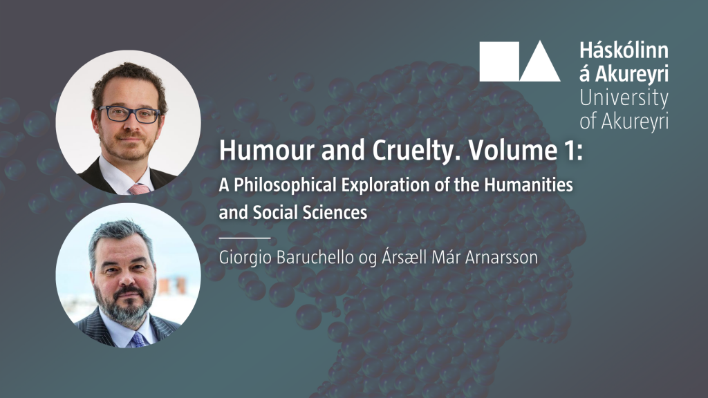 Prófessorarnir Giorgio Baruchello við Háskólann á Akureyri og Ársæll Arnarsson við Háskóla Íslands hafa nýverið skrifað þriggja binda ritröð um tengsl húmor og grimmdar. Í fyrsta bindinu, sem nefnist Humour and Cruelty. Volume 1: A philosophical exploration of the humanities and social sciences og kom nýverið út hjá hinu fornfræga De Gruyter útgáfufyrirtæki, er einmitt leitast við að varpa ljósi á tengsl þessara tveggja hugtaka. Bókin er afar viðamikil og tekur til rannsókna í hugvísindum, félagsvísindum og heilbrigðisvísindum, allt frá forngrikkjum til vorra daga. Ekki þarf að fjölyrða um að efni bókarinnar á ríkt erindi við samtímann.